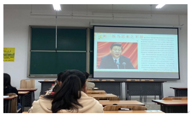 城规201班团支部带领同学们学习习近平总书记关于厉行勤俭节约,反对铺张浪费重要指示精神,播放中央相关新闻报道,引导同学们思考厉行节约的重大意义,从我做起,践行勤俭美德,消灭餐饮浪费现象。