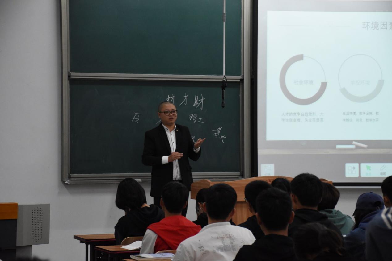 钱总监以一“生”一“涯”为思考带领新生们进入主题,从自我认识、环境分析、职业定位、执行计划等四个方面层层递进、逐一展开阐述。他强调大学生应学会“三分析”,即自我分析、性格分析、优势分析,从中寻找自己的优势与劣势,合理定位自己。