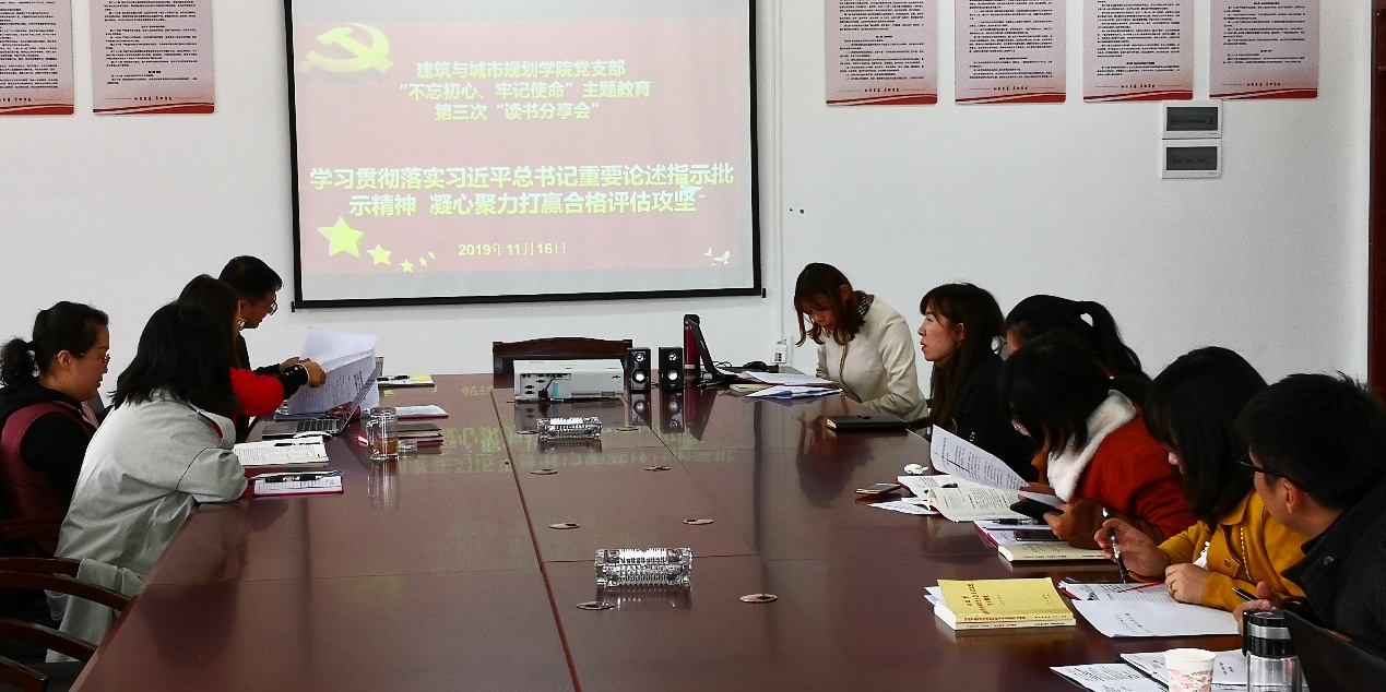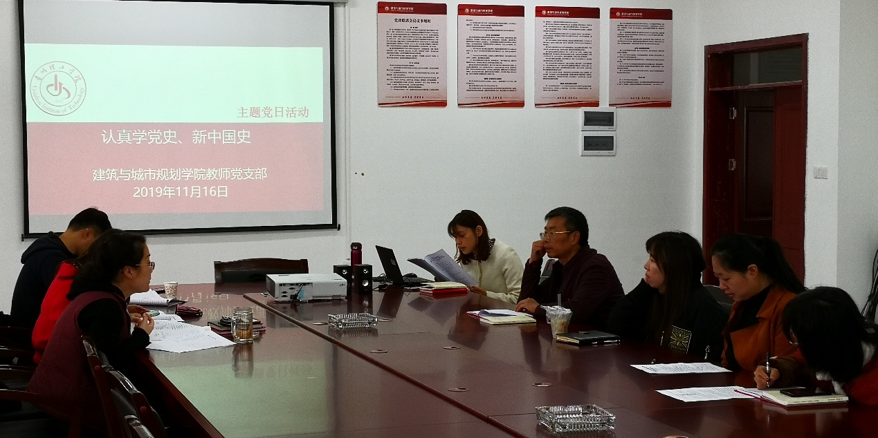 本网讯(建规学院 王喆)11月16日,建筑与城市规划学院教师党支部在贵安校区知行楼G3501会议室举行“认真学党史、新中国史”主题党日活动暨“不忘初心、牢记使命”主题教育第三次读书分享会。会议由教师党支部组织委员周茜茜同志主持,支部全体师生党员参加分享会。