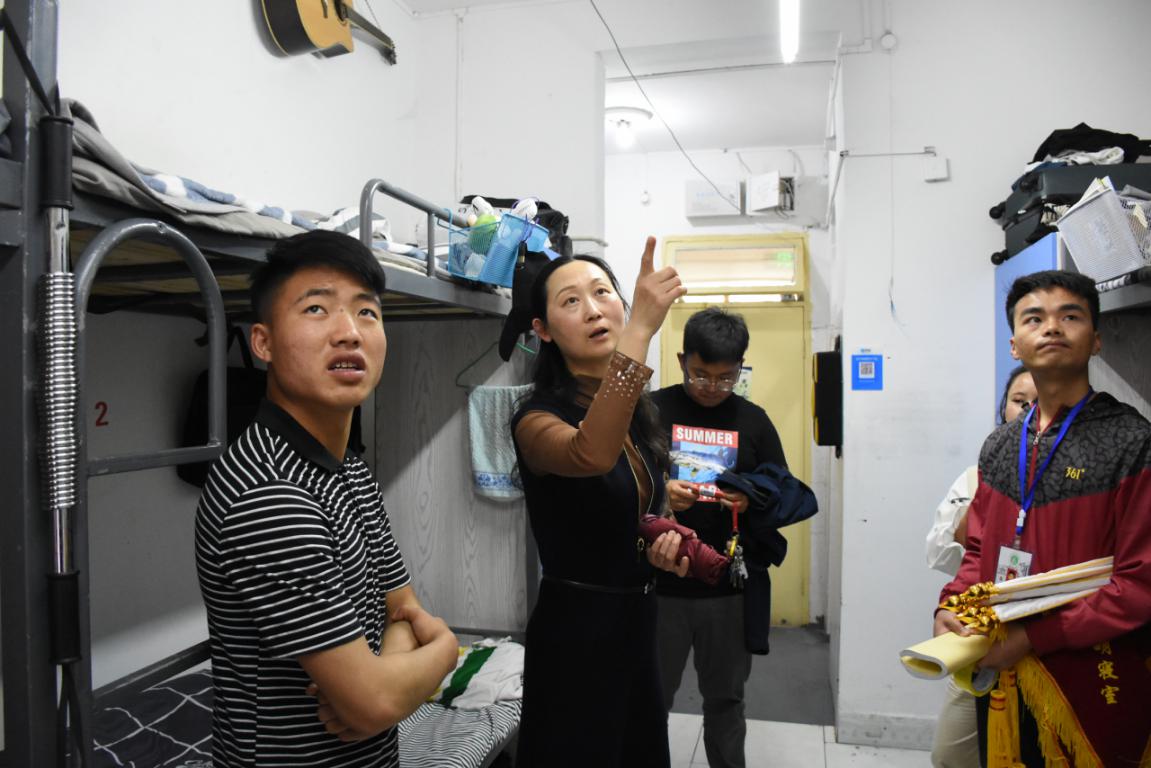 4月10日中午,学院党总支书记张艳带队对学生寝室进行了卫生大检查,针对各寝室问题提出整改意见,同时提醒同学们,“寝室是大家的,不仅要做好个人卫生,还要有集体意识,共同营造文明、健康、优美的寝室环境。”检查结束后,授予一号公寓614、八号公寓230、434等8间寝室“文明寝室”流动红旗,对卫生环境不达标的寝室贴了红牌,要求限期整改。
