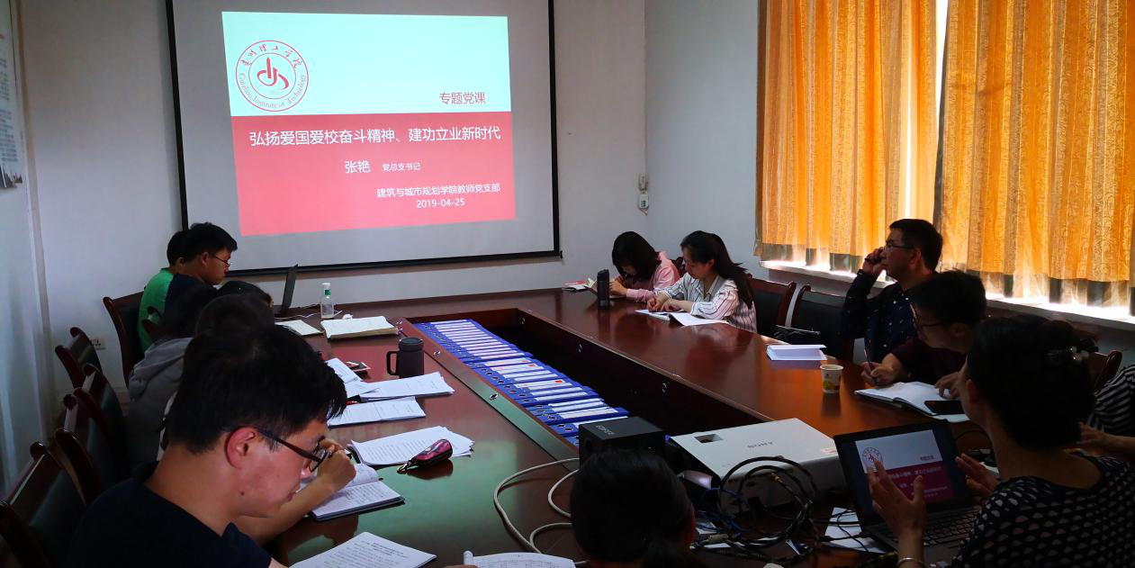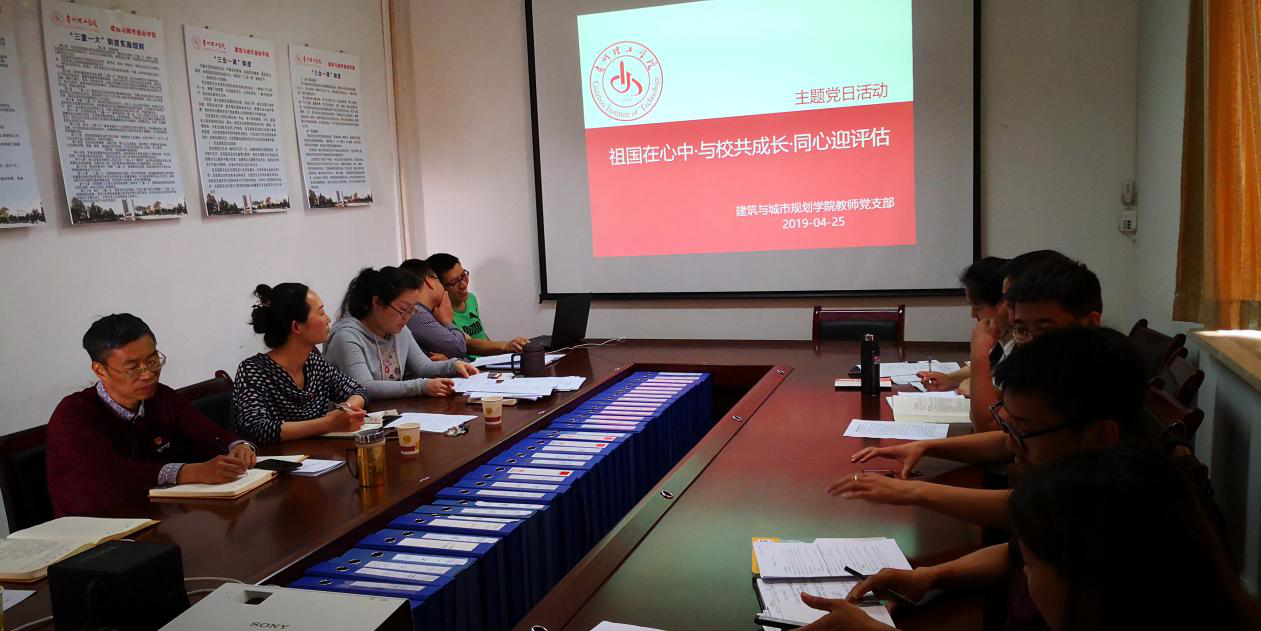 本网讯(建规学院 王喆)4月25日,建筑与城市规划学院教师党支部全体师生党员和党外人士代表在学院会议室开展了“祖国在心中·与校共成长·同心迎评估”主题党日活动。会议由支部书记颜政纲主持,院领导以普通党员的身份参加了本次主题党日活动。