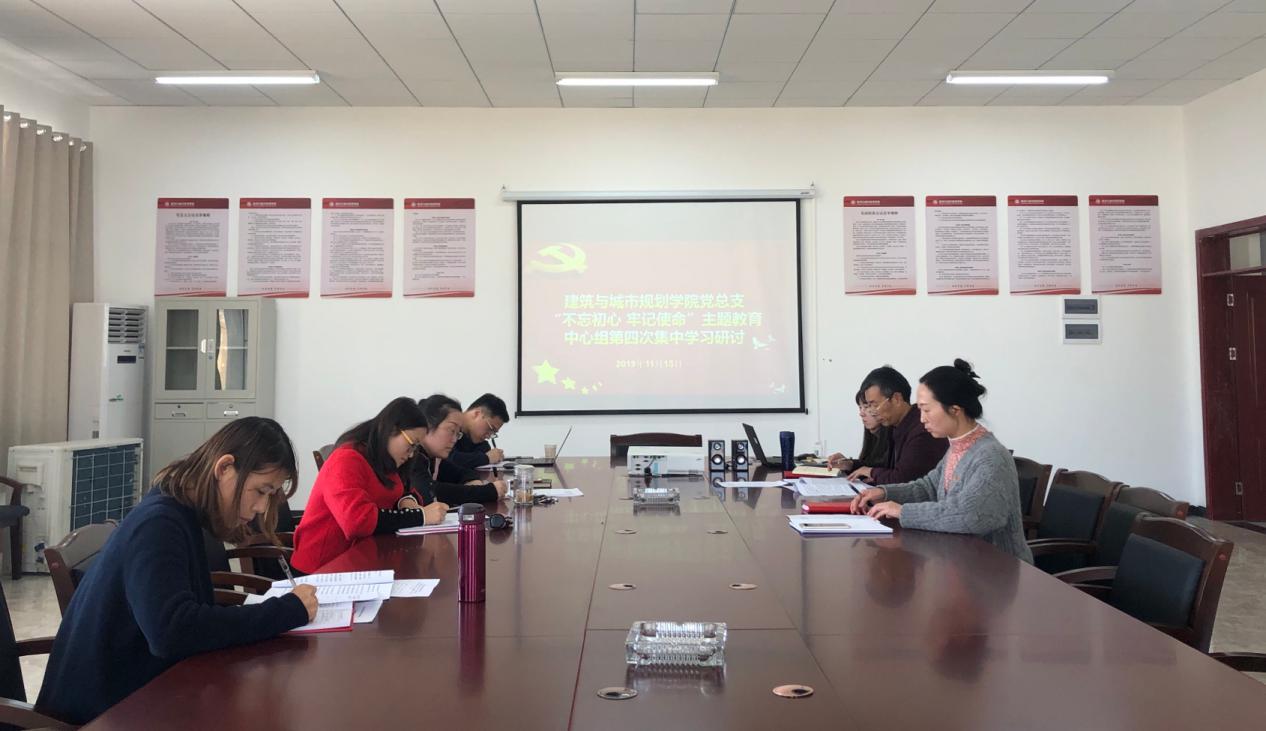 本网讯(建规学院 申偲)11月15日,建筑与城市规划学院党总支中心组在贵安校区知行楼G3501会议室举行以“凝心聚力打赢合格评估攻坚战”为主题的“不忘初心、牢记使命”主题教育第四次专题集中学习研讨。学院党总支班子成员、科级干部、党支部书记参加学习,党总支书记张艳主持学习。