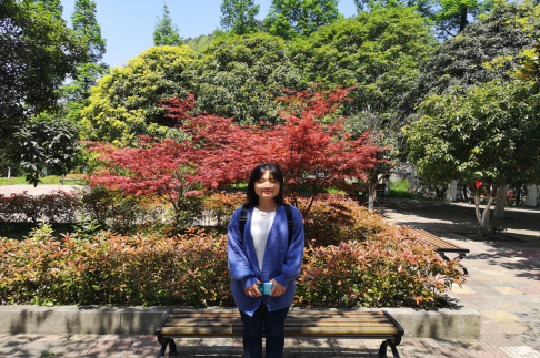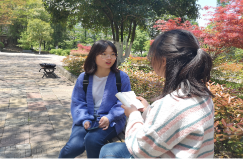 于图书馆初见张翠雯,她静坐在的图书馆后院,身后红枫如火,与绿树交相辉映,衬着张翠雯如午后阳光般的微笑。朴素而亲切,是她给人的第一印象。