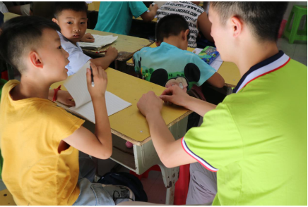 在文化课上,队员们耐心地给孩子们讲解知识点;在羽毛球课上,孩子们饶有兴趣地学习发球、接球等。看着孩子们眼中充满了对知识的渴望,认真、努力地学习,支教队员倍感欣慰。