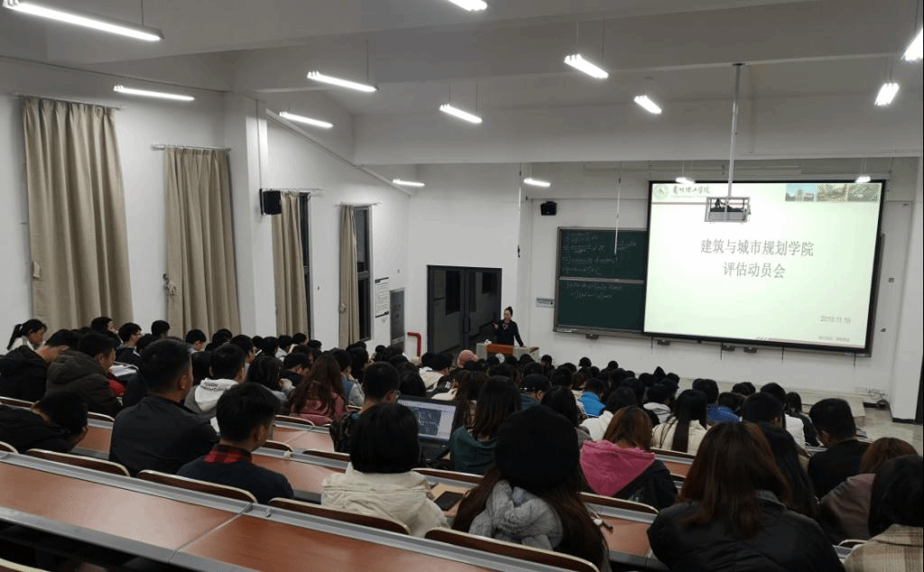 本网讯(建规学院 田浩)11月19日晚,建筑与城市规划学院在贵安校区天工楼2108、2109教室举行学生评估再动员大会。党总支书记张艳、副书记吴开慧出席会议,学生科副科长周茜茜、辅导员陈梦玲及学院在校学生参加会议。