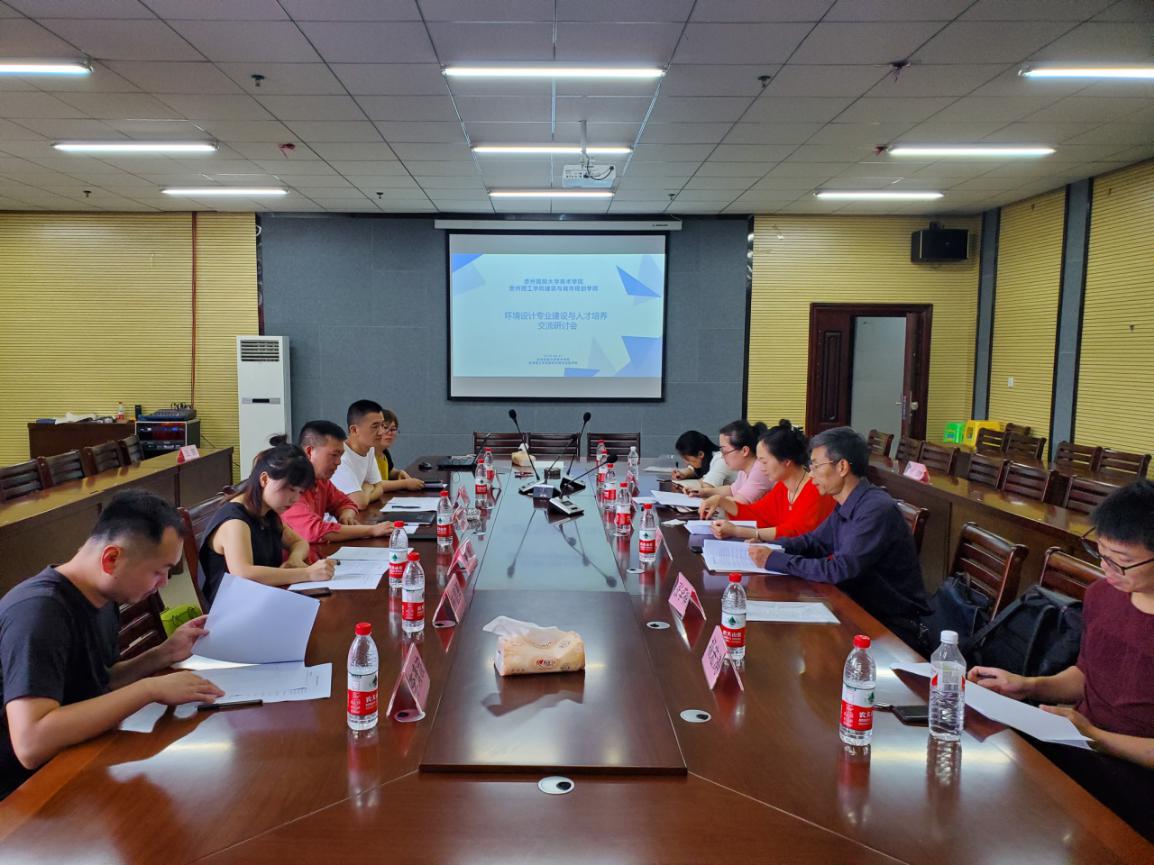 调研组一行分别与贵州大学美术学院院长耿翊、贵州民族大学美术学院院长范昭平及环境设计专业负责人座谈。双方围绕专业建设、人才队伍建设、人才培养方案的修订、专业课程设置、实验室建设与管理等方面进行深入交流,听取兄弟学院的意见和建议。座谈结束后,调研组一行还参观了各学院的实验室、工作室等,观摩了教学实验现场。