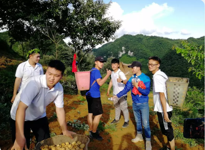 7月25日,建规志愿者在得知一位留守儿童既要忙于学业又要下地干活之后,主动向带队老师请缨,帮助村民下地挖土豆,进行义务劳动。