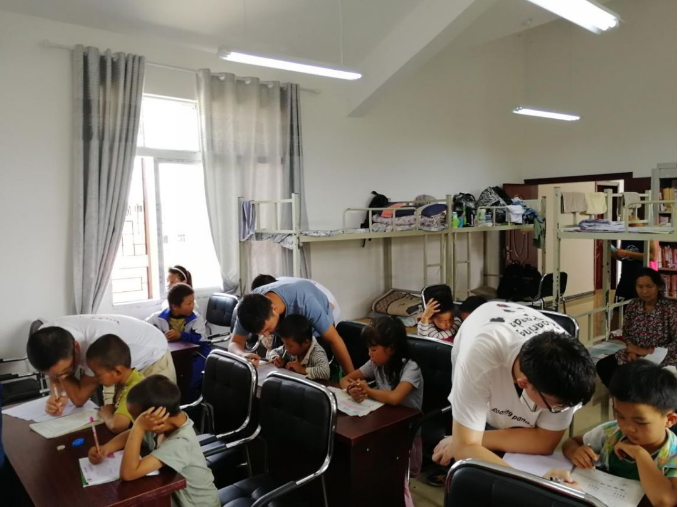 7月24日,建规学院的七名志愿者在刘芳诚老师的带领下, 整理走访的精准扶贫户信息,并为联合村的孩子们开展教学辅导。