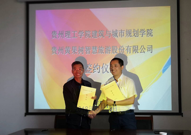 本网讯(建规学院 吴开慧)5月29日,建筑与城市规划学院与贵州黄果树智慧旅游股份有限公司院企合作协议签约仪式在建规学院会议室举行。贵州黄果树智慧旅游股份有限公司董事长张目、董事会秘书陈蕻、副总经理胡昌雄、客服部经理黄凤林、导服部经理封维星,建规学院党总支书记张艳、院长刘恒、贵州智慧旅游产业研究院负责人黄娅以及学院部分教师、学生代表参加了签约仪式。