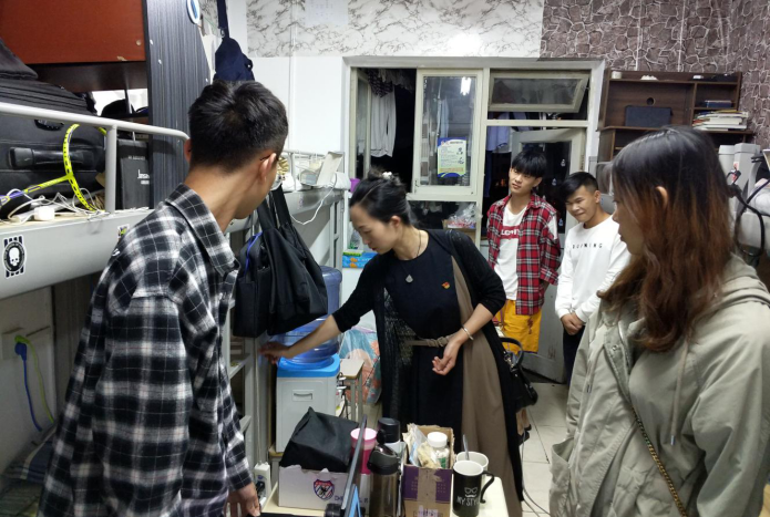 徐元敏部长一行走进建规学院16级学生寝室,从地面、门窗、墙面、房间异味、物品摆放、卫生间、垃圾处理、违规物品及行为等方面进行检查,指出存在的卫生问题和安全隐患,提出整改意见,并与同学们进行学习和生活上的交流,进一步了解学生所思所想所需。