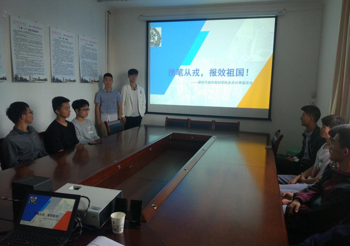 本网讯(建规学院)为鼓励学生积极应征入伍,提高兵员征集质量,推进国防和军队现代化建设,我院上月开始开展大学生兵役登记工作。4月19日下午,学院组织学生集中学习习近平总书记给南开大学新入伍大学生的回信精神,与退伍老兵座谈交流。