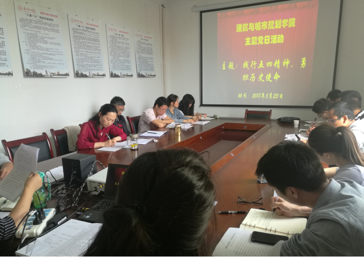 本网讯(建规学院 胡婷)5月23日下午,建筑与城市规划学院教师党员齐聚学院会议室,开展“学习五四精神 勇担历史使命”主题党日活动。我院学生入党积极分子和发展对象列席会议。