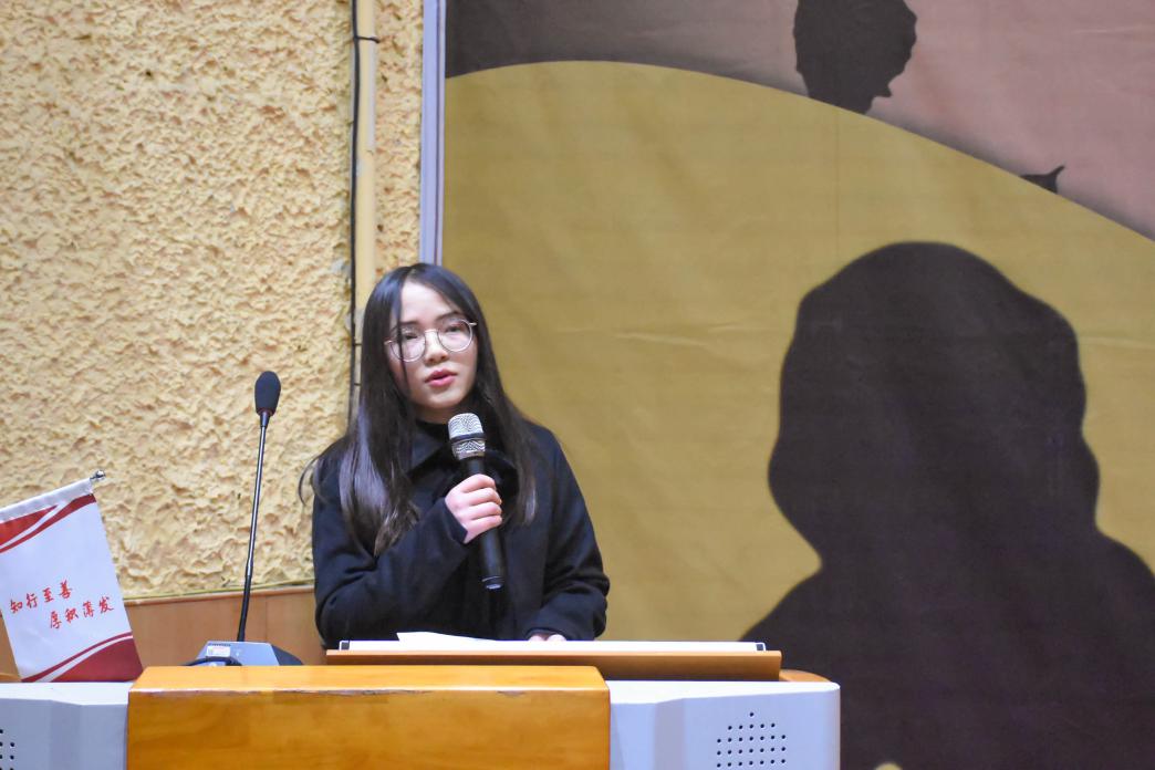 国家奖学金获得者白玉梅同学作为优秀学生代表发言,号召同学们以创建优良学风为己任,积极行动起来,端正学习态度,“不浪费大学时光,只争朝夕”,在各项考试中取得优异成绩。