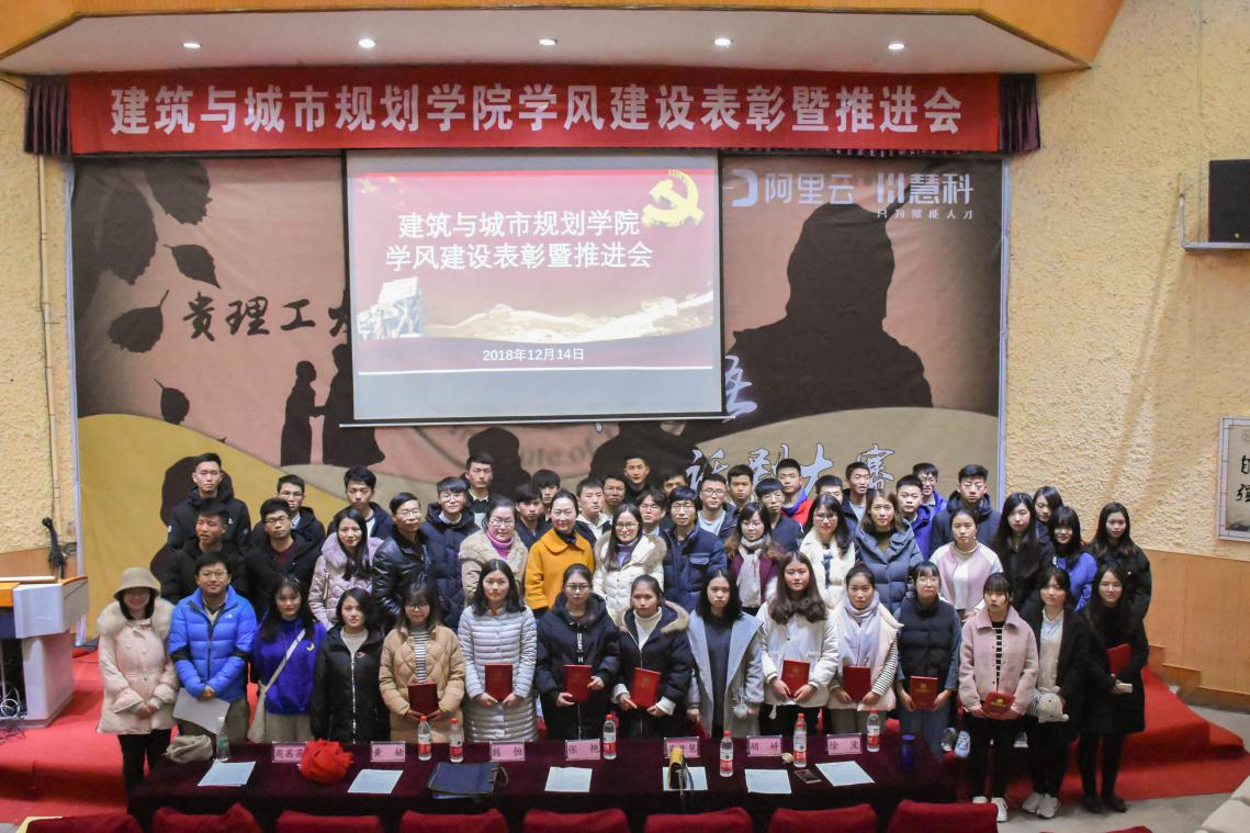 本网讯(建规学院 任明珠)12月14日晚, 建筑与城市规划学院在逸夫小报告厅举行学风建设表彰暨推进大会,总结2017—2018学年学风建设取得的成绩,表彰先进,查找问题,部署工作。学院党总支书记张艳、院长刘恒、负责人黄娅,组织员吴开慧以及辅导员、班主任老师出席大会,全体建规学子参加大会。