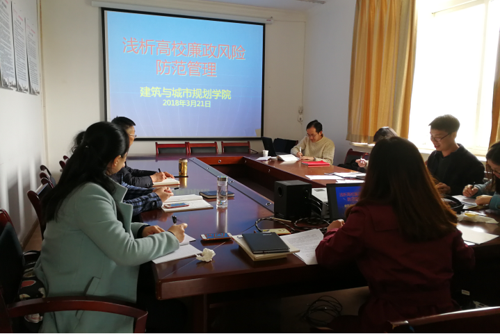本网讯(建规学院 胡婷)3月21日下午,建筑与城市规划学院全体教师党员齐聚学院会议室,深入学习研究“五步工作法”和高校廉政风险防控点,相互交流心得体会。