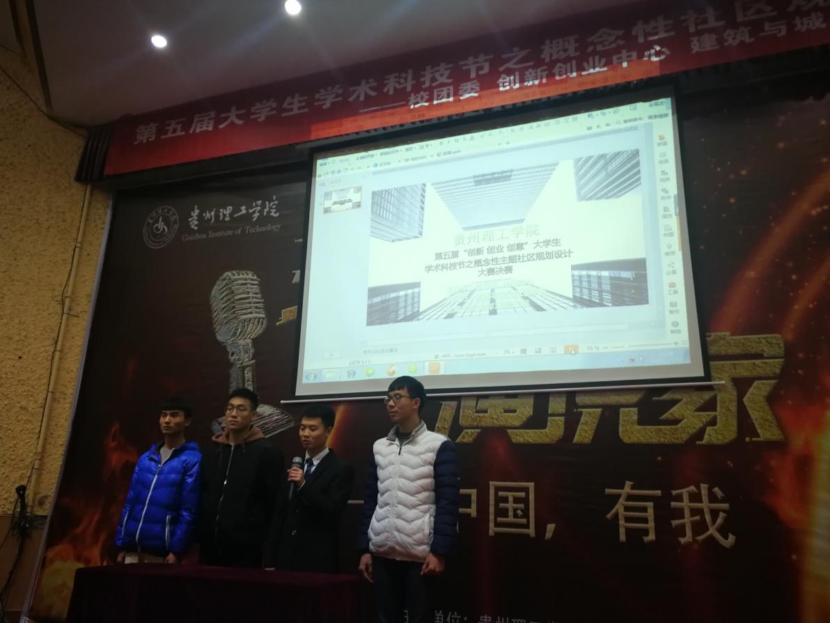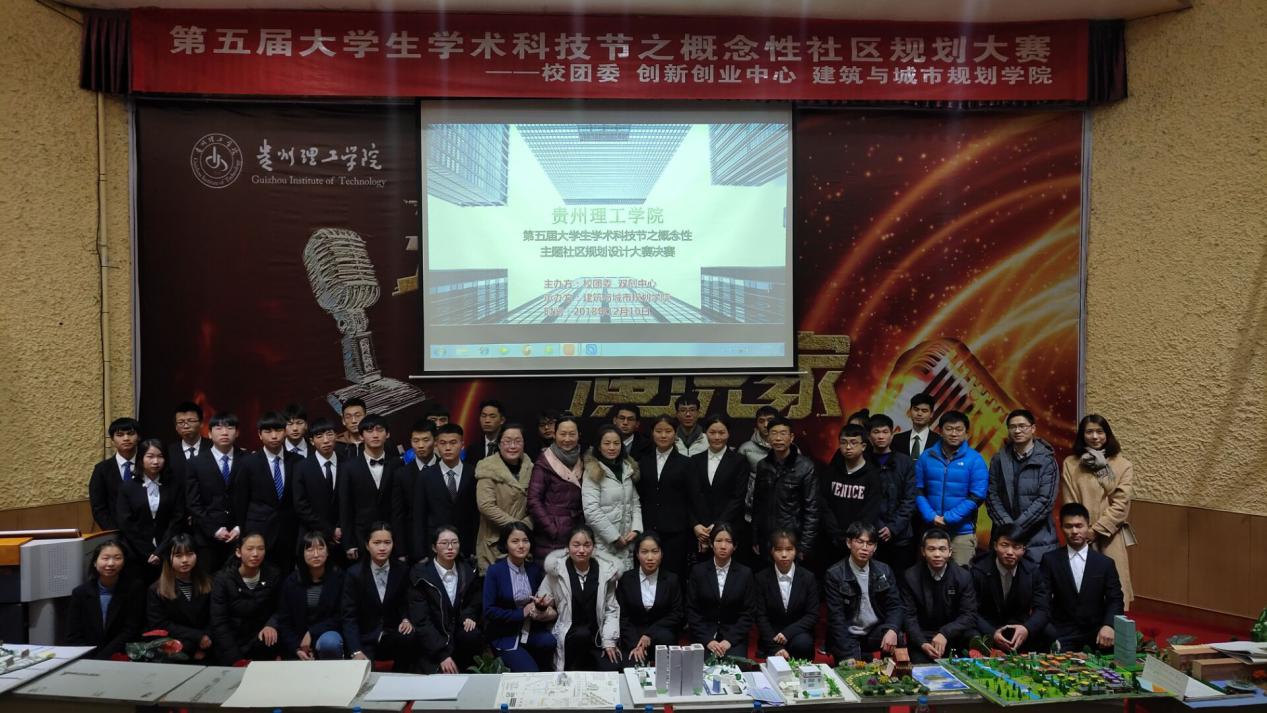 本网讯(建规学院 张航)12月10日晚,由建筑与城市规划学院承办的贵州理工学院第五届大学生学术科技节之概念性主题社区规划大赛决赛在逸夫小报告厅举行。活动特邀建规学院刘恒教授、黄娅教授、颜政纲博士、马庚老师及土木工程学院冯梅老师担任评委,建规学院党总支书记张艳出席活动。