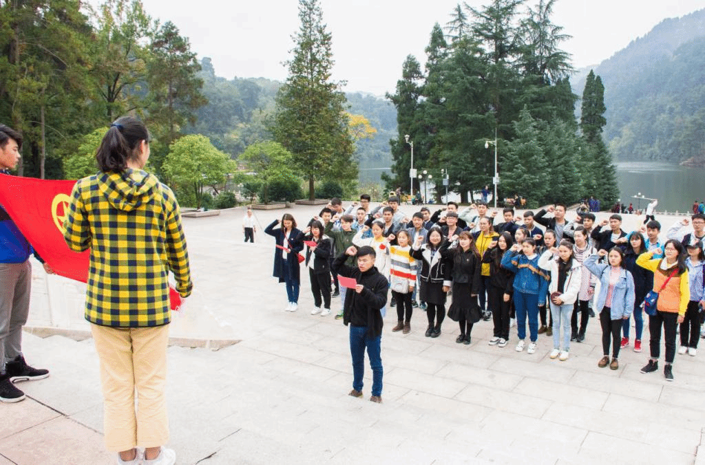 “我志愿加入中国共产主义青年团,坚决拥护中国共产党的领导,遵守团的章程,执行团的决议,履行团员义务……”团学干部举起右手,面对纪念碑及团旗,重温入团誓词。通过宣誓,团学干部充分认识到“不忘初心跟党走”不只是一种口号,更是一种使命和责任。