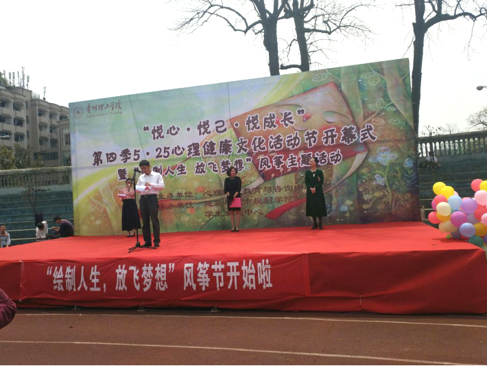 本网讯(建规学院 安金华)4月14日,由我校心理健康教育与咨询中心主办,建规学院承办的“绘制人生,放飞梦想”风筝节主题活动在下寨田径场举行。校学生工作部部长徐元敏、副部长仇念华及建规学院党总支书记张艳出席活动。