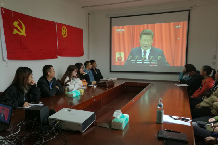上午9时,随着中国共产党第十九次全国代表大会开幕会拉开帷幕,大家认真聆听、学习记录习近平同志代表第十八届中央委员会向大会作的报告。