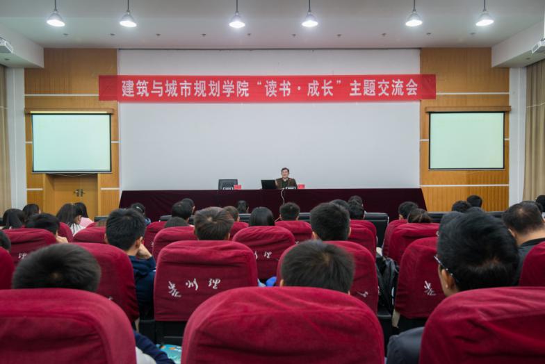 本网讯(建规学院王一宁张艳)11月7日晚,喀斯特三楼报告厅座无虚席,气氛热烈,建筑与城市规划学院首期道德讲堂暨“读书·成长”交流会在此举行。校党委书记曾羽应邀做讲座,与建规师生就“好好读书”这一主题进行了近距离交流。建规学院院长刘恒主持讲座。