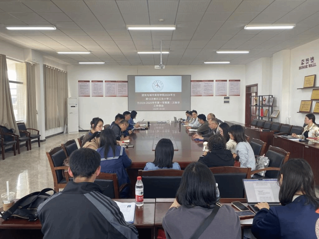 2024年11月14日下午,建筑与城市规划学院召开本学期第三次教学工作例会,会议由党总支书记袁小松主持,院长黄娅就有关教学工作进行部署,全院教职工参加会议。