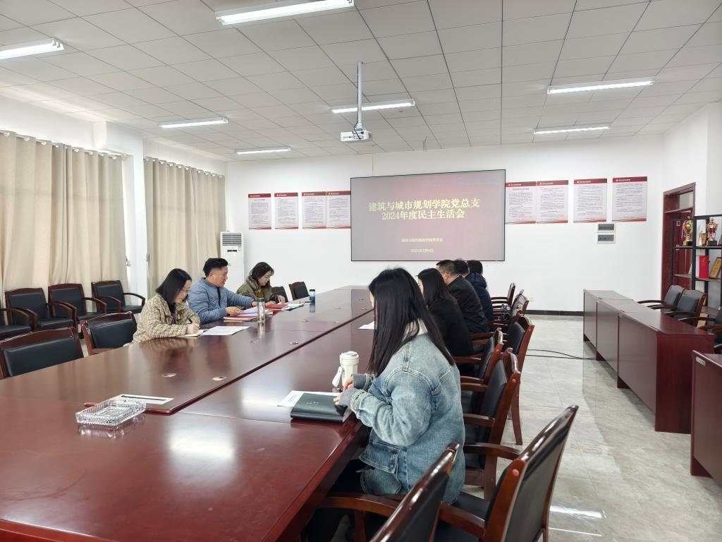 2024年3月6日下午14:30,建筑与城市规划学院党总支在敏行楼G3501会议室召开2024年度民主生活会。会议由党总支书记袁小松主持,校党委组织部副部长王庆到会指导,学院党总支班子成员黄娅、颜政纲、申偲参加会议,学院副院长韩会庆(中国民主促进会会员)、学院教学科研科、学生科(团总支)负责人列席会议。