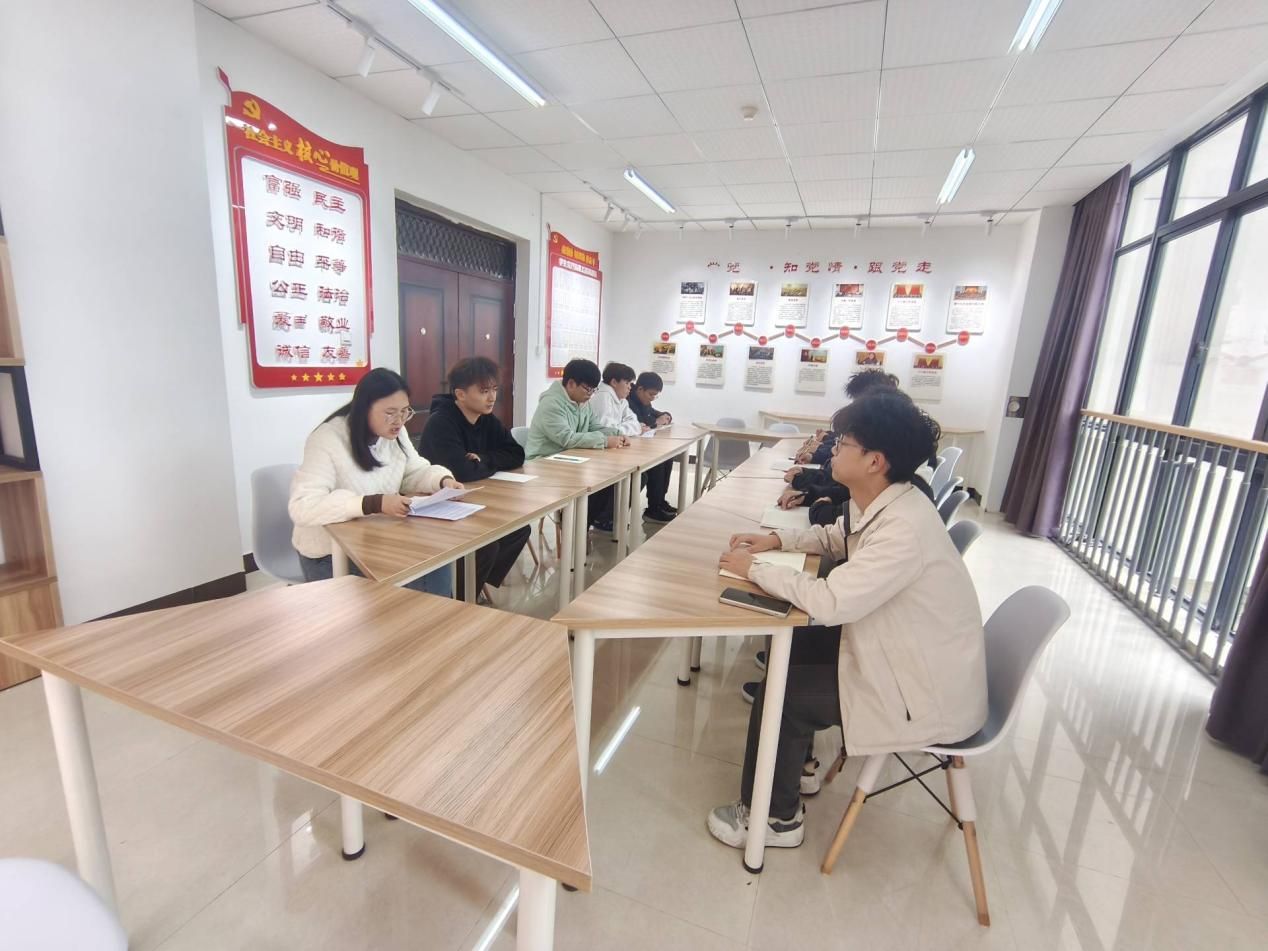 学习结束后,同学们踊跃分享体会。学生会成员何印感慨道:“最触动我的是‘以人民为中心’这一主线——从‘健全基本公共服务体系’到‘完善共建共治共享的社会治理制度’,字里行间都透着回应群众需求的温度。这让我真切感到,制度优势不仅是宏大的框架,更是落地有声的为民初心。”