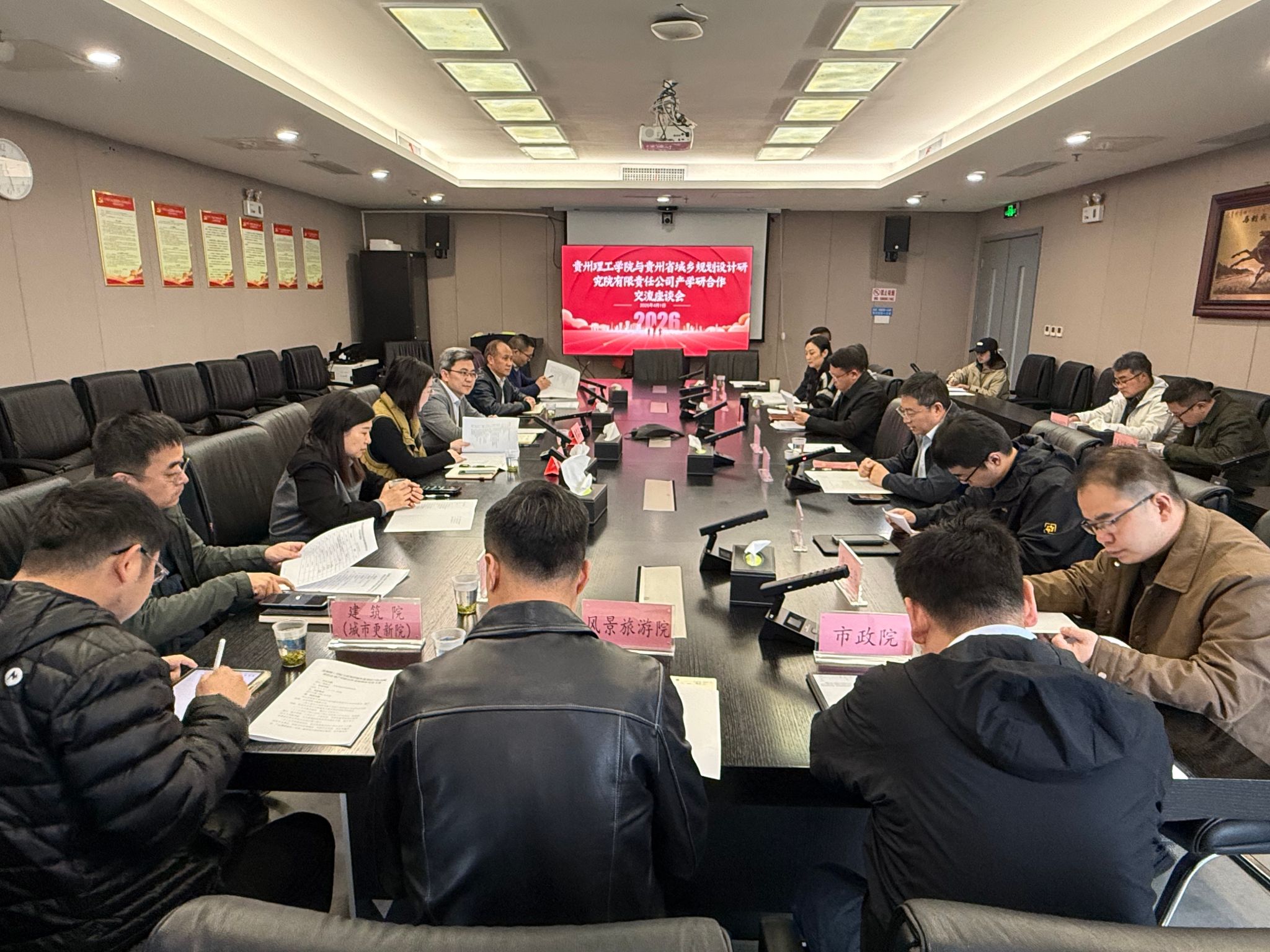 为深入推进校地合作、深化产教融合,精准对接城乡规划领域人才培养、技术创新与产业发展需求,2026年4月1日下午,贵州理工学院建筑与城市规划学院与贵州省城乡规划设计院有限责任公司产学研合作交流座谈会在设计大厦2206会议室顺利召开。