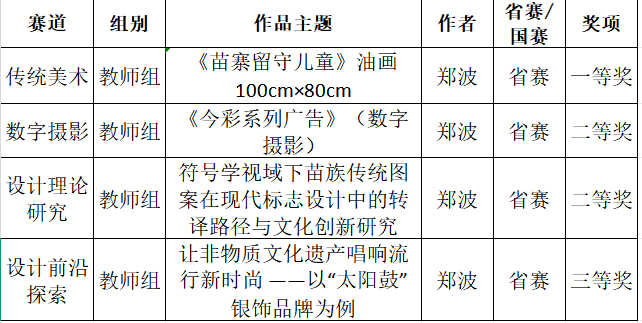 近日,第九届“米兰设计周-中国高校设计学科师生优秀作品展”非命题赛场贵州赛区获奖名单正式揭晓。我院师生凭借优秀的设计才华与创新精神,在比赛中脱颖而出,共斩获省赛一等奖3项(推荐国赛)、二等奖3项(推荐国赛)、三等奖7项,充分展现了我院在设计学科建设中的实力与成果。