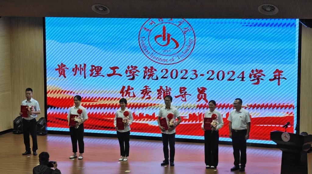 2024年9月10日,贵州理工学院“大力弘扬教育家精神,加快建设教育强国”2024年教师节庆祝表彰大会暨新进教师荣入仪式在蕴华楼四楼多功能厅举行,校领导苏向东、潘良明、胡兴灿、高勇、张开智、李少波、杨鹏出席会议。会议对有关教师先进个人进行了表彰,我院学生科副科长、团总支副书记周红韵被评为2023-2024学年全校优秀辅导员。