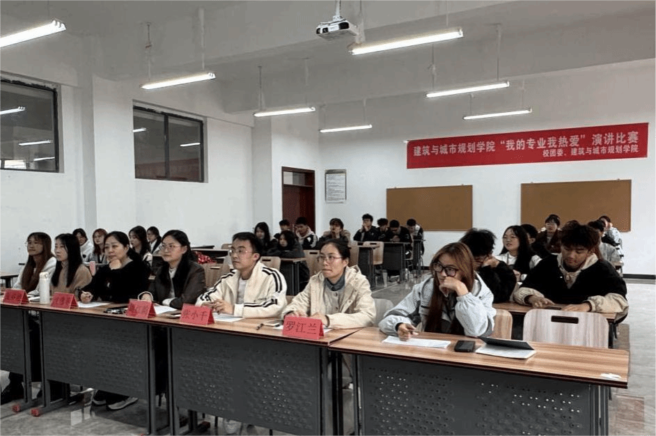 为进一步增强学生对专业的认同感和归属感,提升其语言表达能力、逻辑思维能力和舞台表现力,促进学生全面发展,并引导师生以健康、积极、向上的精神风貌迎接审核评估,2025年10月23日下午,由校团委主办、建筑与城市规划学院承办的“我专业·我热爱”主题演讲决赛在敏行楼3202教室热烈展开。同学们以心声为墨,将图纸上的线条、模型中的光影、田野间的脚印、实验室的汗水,悉数化作滚烫的字句,生动诠释了专业的深度与青春的温度。