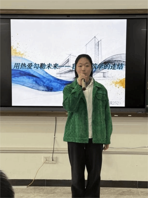 灯光亮起,选手们依次登台,围绕“专业认知”与“学习实践”两大主题,剖析他们与设计、与城市的情感纽带。有的同学以图纸绘制中的细节追求为切入点,讲述从线条勾勒到空间构想的专业成长历程;有的结合城市调研实践经历,畅谈运用规划思维助力人居环境优化的理想抱负;也有人表达了深耕建筑领域、践行“筑梦城市”使命的坚定决心。演讲中,选手们或娓娓道来专业学习的艰辛与收获,或慷慨激昂地抒发对行业未来的美好憧憬,字里行间流露出对自己所学及所热爱专业的执着坚守,赢得现场阵阵热烈掌声。