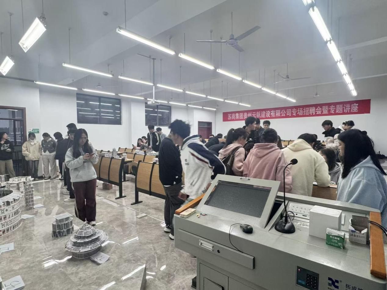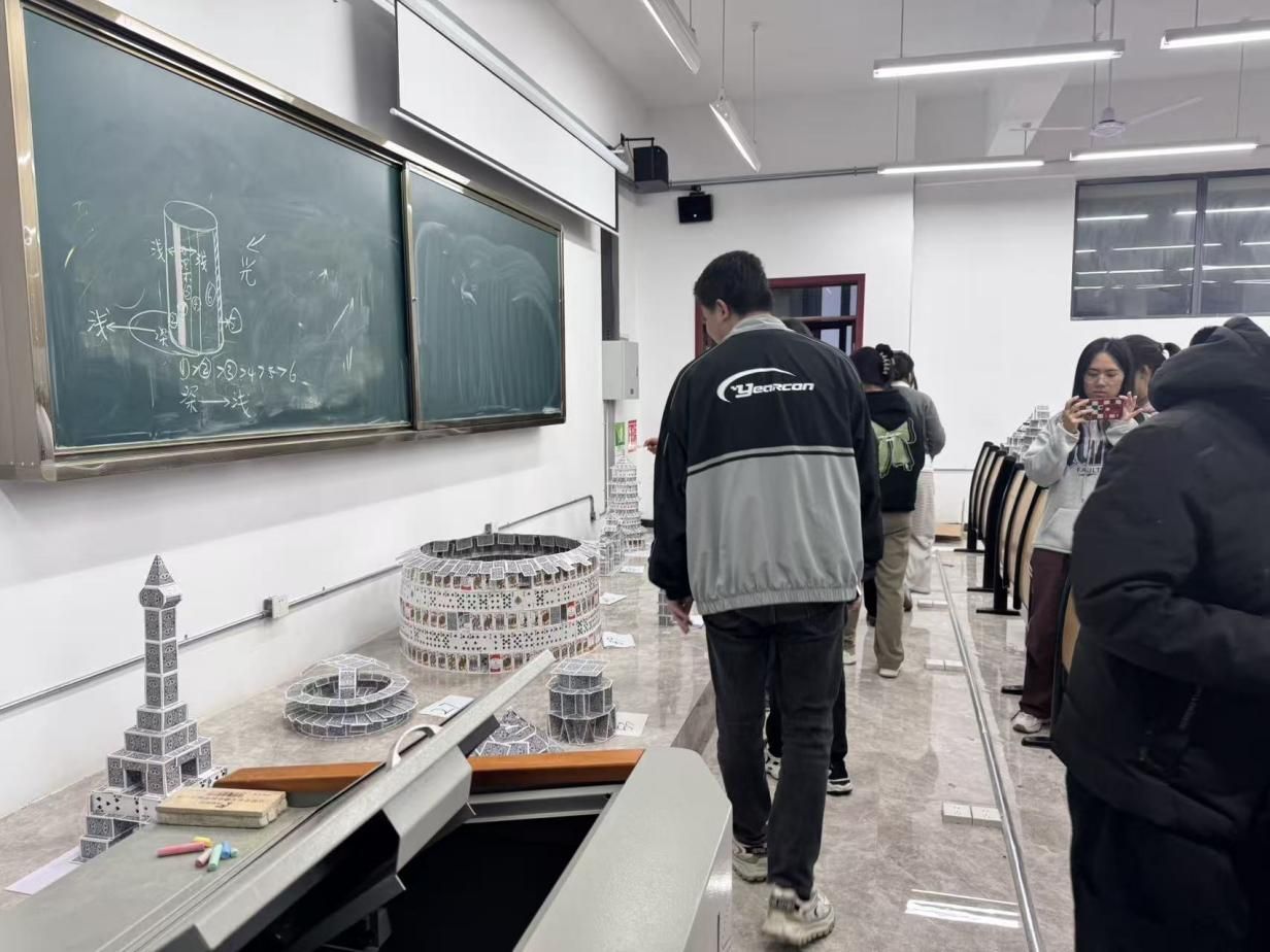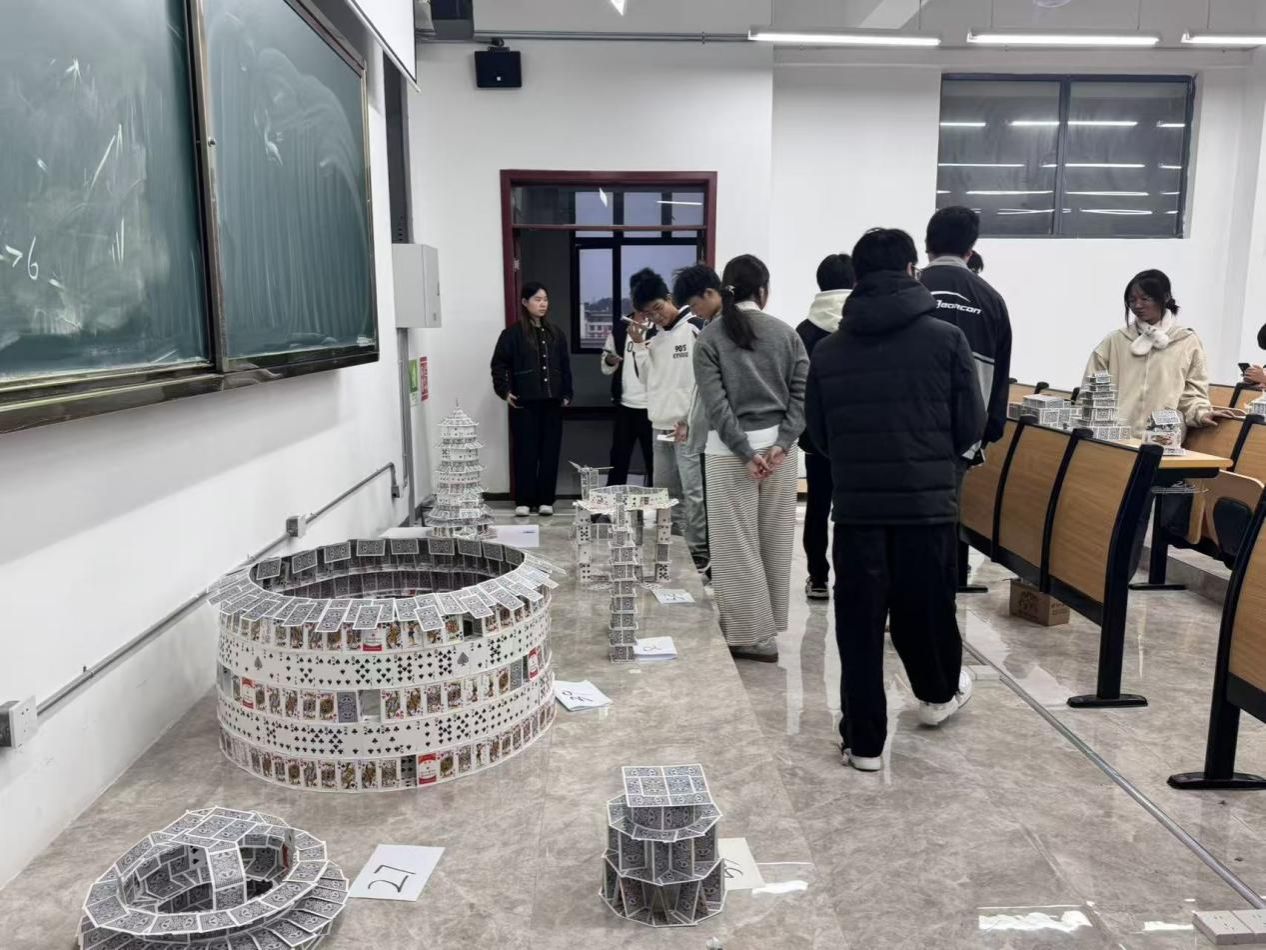 为激发学生创新潜能、深化跨学科融合,2025年11月1—2日,由校团委、创新创业中心联袂建筑与城市规划学院、体育学院共同主办的“构筑方略·棋乐无穷”纸牌建筑创意竞赛在开物楼 G1109 教室精彩收官。赛事以“以纸牌为砖瓦,筑心中奇观”为号角,吸引全校 70 支战队同台竞技,在方寸纸牌间解构建筑美学、演绎结构力学,让理工学子的奇思妙想“站”成一座座看得见、摸得着的创意地标。