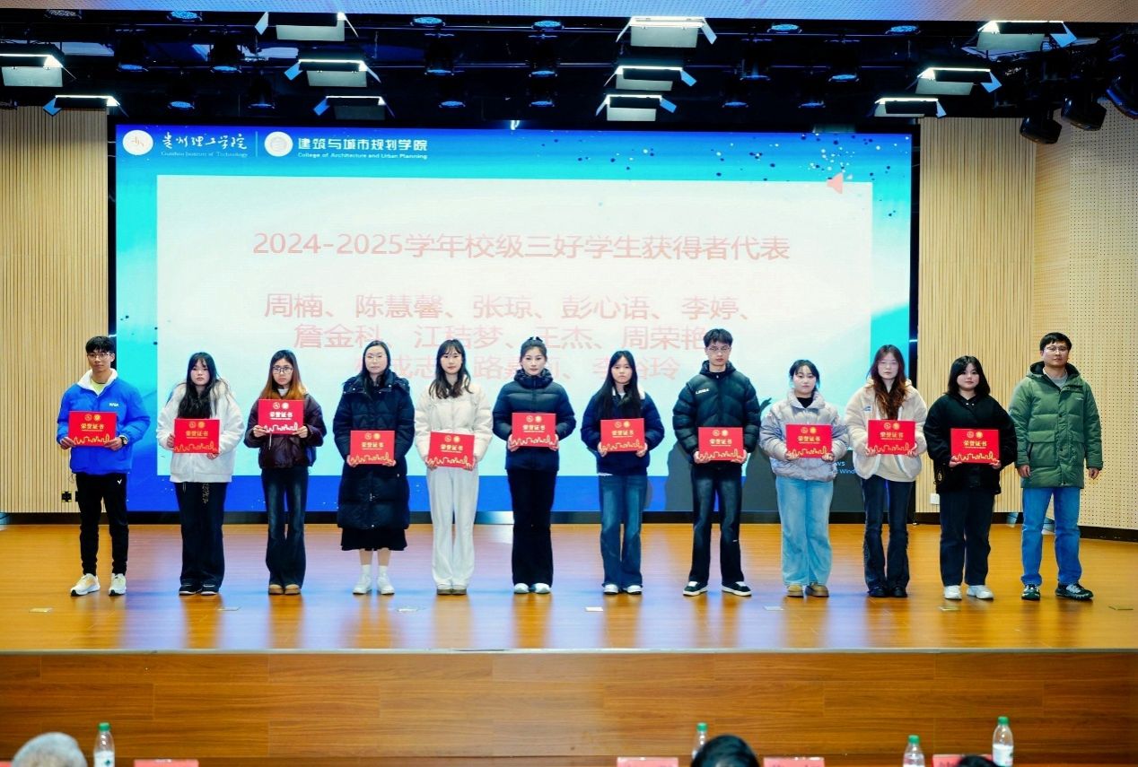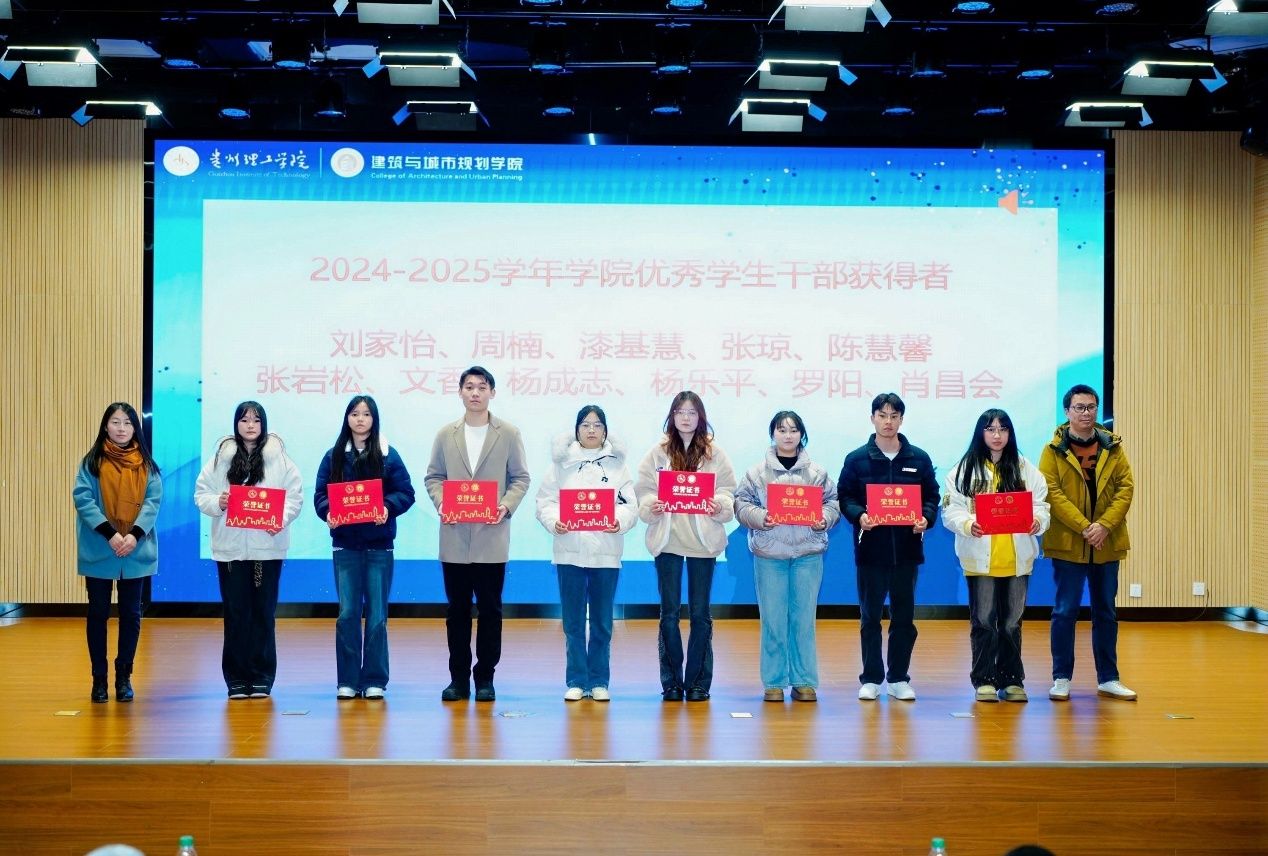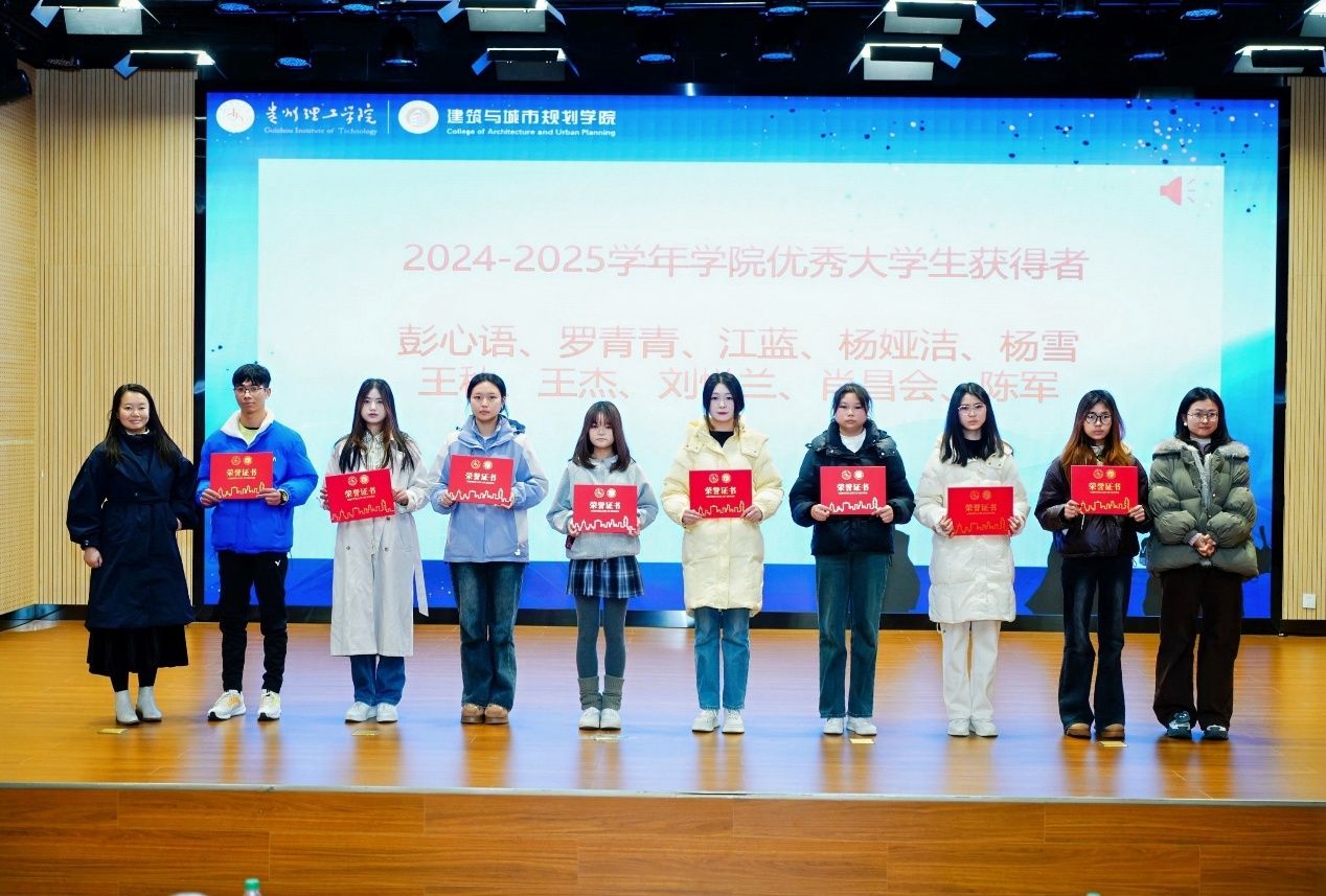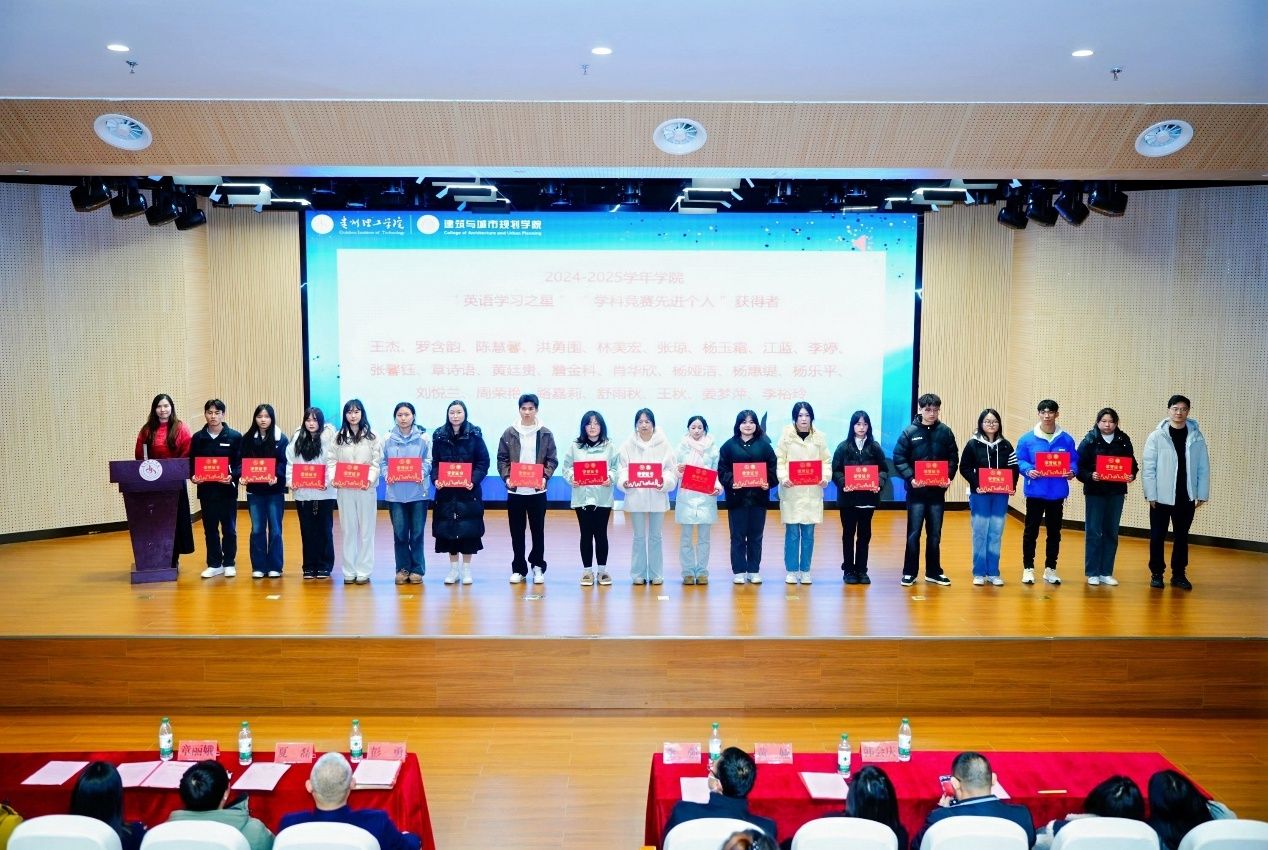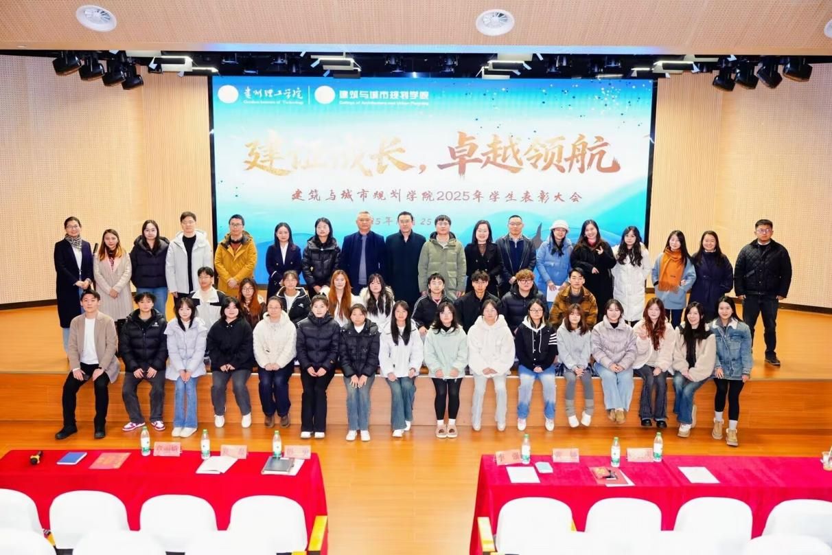 学院院长黄娅在致辞中向全体获奖师生致以热烈祝贺,并盘点2025年学院发展成果:获批两个微专业,卓越工程师班开班,建筑学专业迎来首届毕业生;环境设计专业师生团队斩获多项国家级和省级学科竞赛奖项;人文地理与城乡规划专业深度参与贵州乡村振兴,落地项目十余项。她强调,学院将紧扣国家乡村振兴发展战略和贵州新型城镇化脉搏,持续深化校企协同、推进科技创新与社会服务,期待建规学子以今日之星为镜、见贤思齐,以明日之志为帆、接续奋斗,把个人梦想嵌入学院发展、把专业才干写进地方建设,于深耕细作中追求卓越。