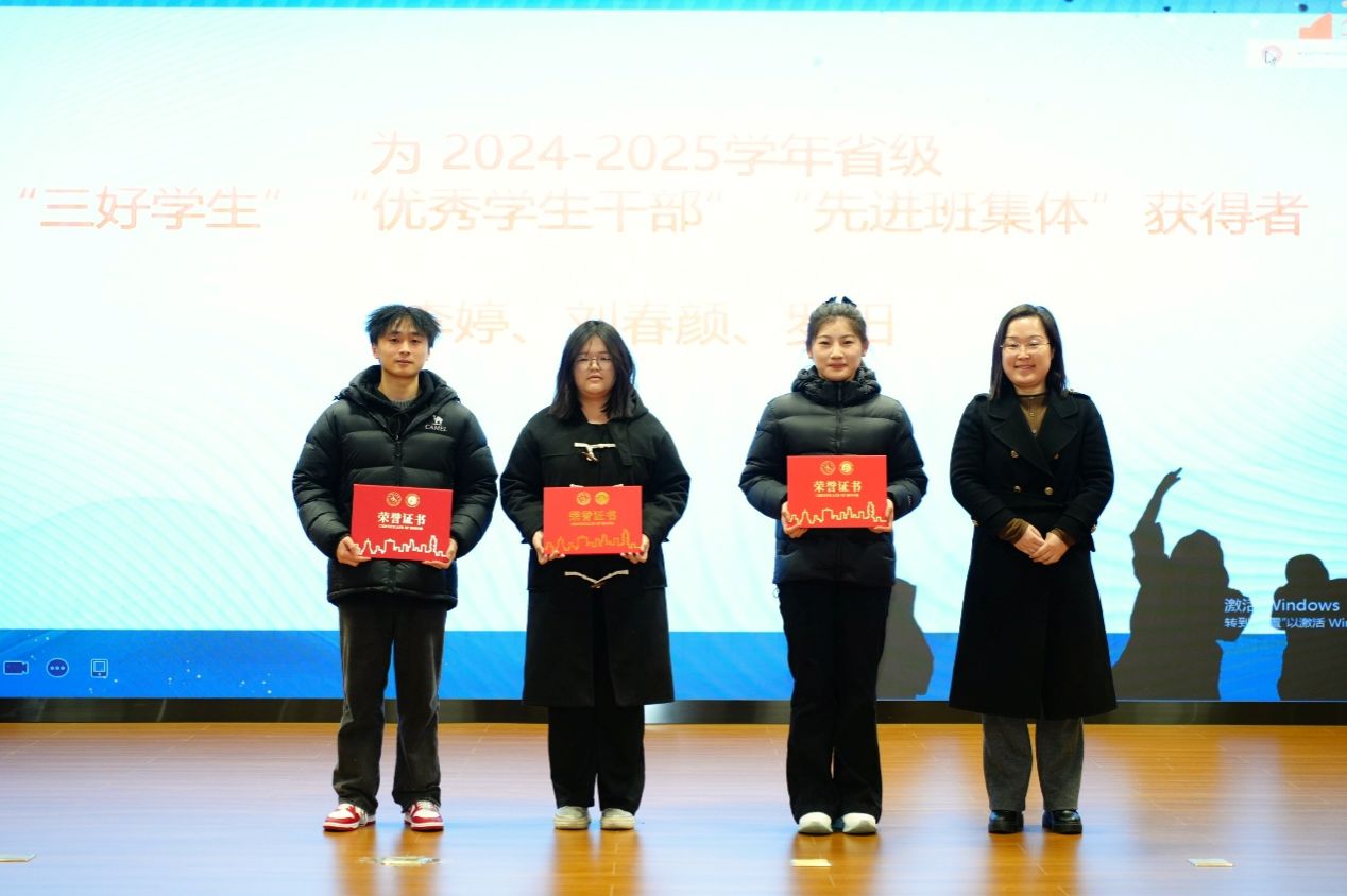 在庄重热烈的氛围中,学院党总支副书记章丽娥宣读2024—2025学年学生表彰文件。对学院获得国家奖学金、励志奖学金同学,省级“三好学生”“优秀学生干部”“先进班集体”,校级“三好学生”“优秀学生干部”“学业奖学金”“文体积极分子”,院级“优秀大学生”“优秀学生干部”“优秀共青团员/团干部”“英语学习之星”“学科竞赛先进个人”“体育标兵”,以及“就业先锋”“考研先锋”“入伍先锋”等进行表彰。