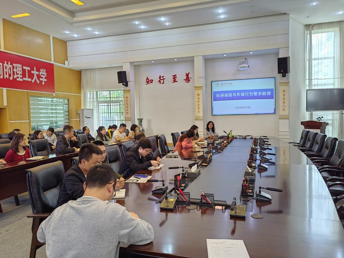 2023年4月23日下午,在喀斯特会议厅,科技处组织开展科研诚信与失信行为警示教育工作会议。会议由科技处处长黄芳主持。