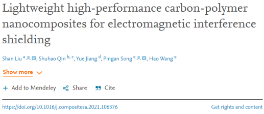 材料与能源工程学院刘珊团队在Composites Part A: Applied Science and Manufacturing上发表了题为《轻质高性能碳/聚合物纳米复合材料用于电磁屏蔽》(Lightweight high-performance carbon-polymer nanocomposites for electromagnetic interference shielding)的论文。