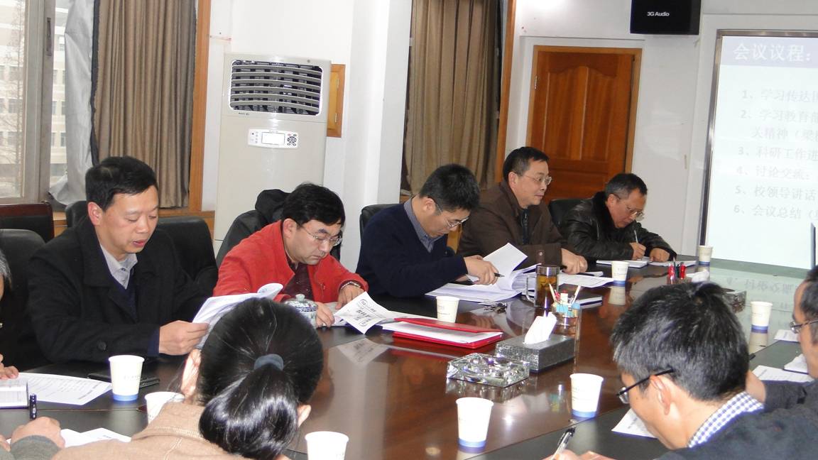 梁杰副校长传达国家自然科学基金委文件以及教育部有关“2011协同创新中心”工作的指示精神;科研处肖利平副处长对2013年度科研工作进展情况进行了汇报;会议讨论交流了关于召开“首届科研工作大会”方案;曾书记、龙校长分别做了重要讲话,充分肯定了本年度我校科研工作所取得的成绩,同时也对今后我校科研工作提出了新的要求、新的任务。