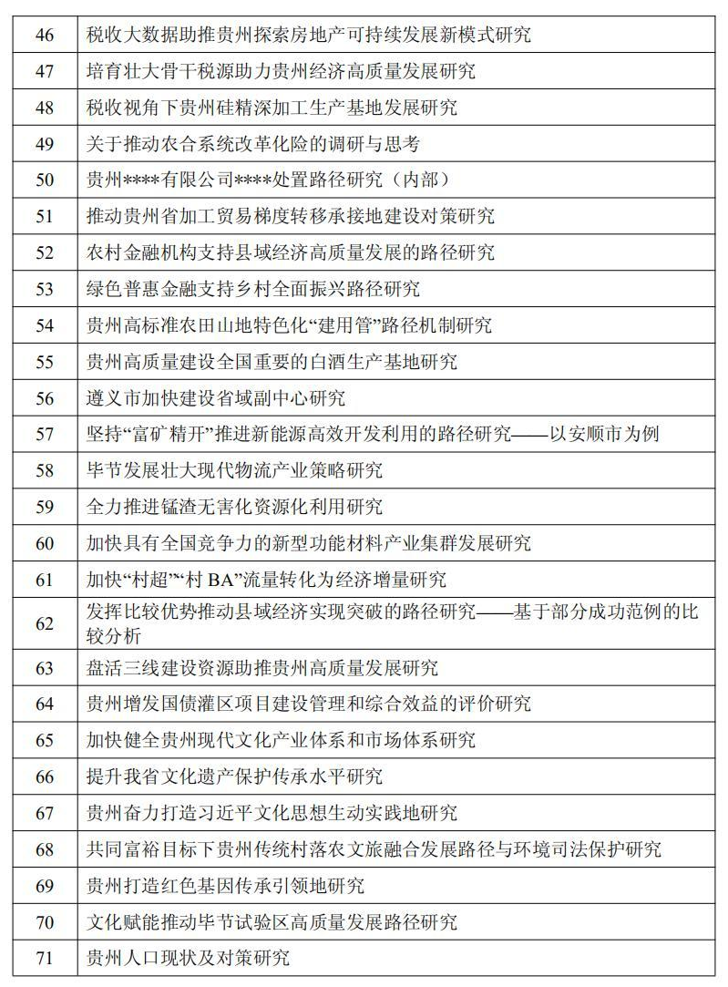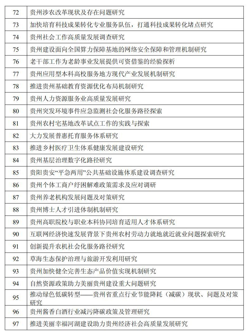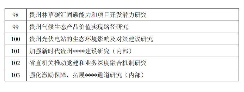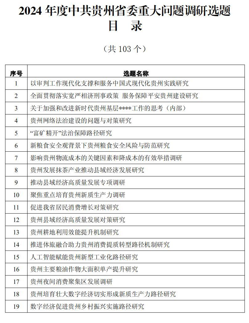 2024年度中共贵州省委重大问题调研选题103个(目录见附件)。申报单位或个人原则上须根据本通知发布课题选题目录中申报。