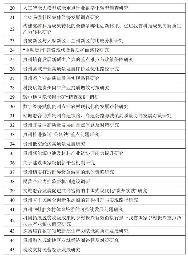 附件:2024年度中共贵州省委重大问题调研选题目录