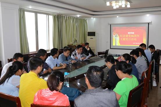 (理学院 刘葵 报道)在中国共产党成立96周年之际,为庆祝建党96周年,继承和发扬党的优良传统,激励教职员工更加立足讲台、忠诚党的教育事业,进一步深入推进“两学一做”常态化制度化,6月29日,理学院在825会议室开展了纪念党建96周年主题党日活动。会议由党总支副书记袁小松主持。理学院院长张民选、副院长李智玲参加了此次活动。