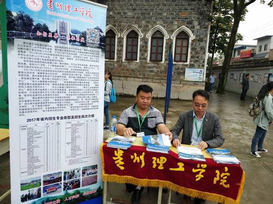 在招生宣传工作过程中,王大飞主任一行到相关学校后,认真参加各校举办的2017年高校招生咨询会,现场发放贵州理工学院2017年招生简章和报考指南等宣传资料,并按要求张贴招生宣传海报。在各校举行的招生宣传现场,王大飞主任认真回答咨询考生及学生家长的相关问题,积极宣传学校的办学概况、招生政策、招生专业和办学成果,认真主动和考生进行面对面的交流,有效推介了学校,取得了良好的宣传效果。