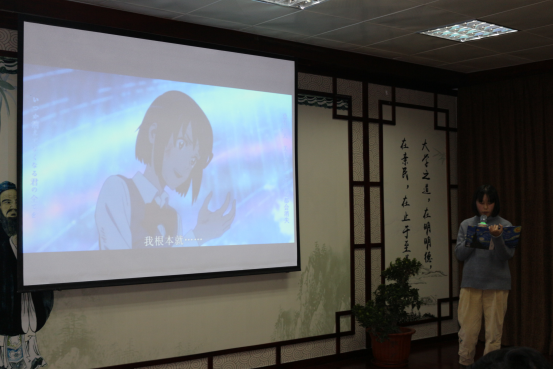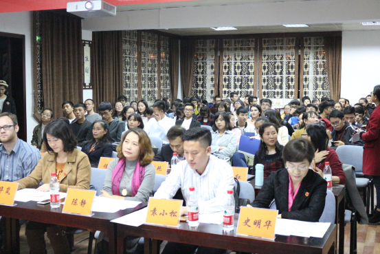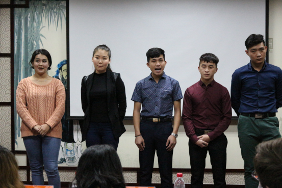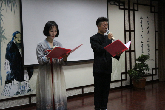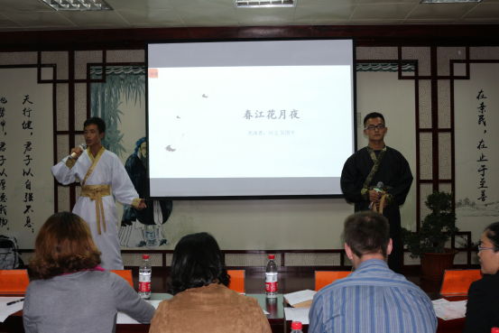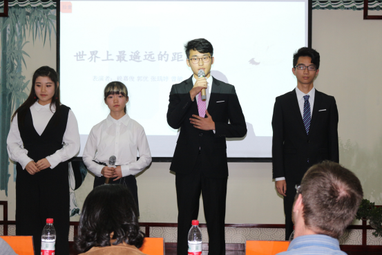 来自国际教育学院的五名外籍留学生在比赛结束前还给大家带来了一场别来生面的集体诗朗诵《面朝大海,春暖花开》,他们并不太娴熟和略带外国口音的中文诵读,却深深打动了在座的每一位师生,留学生们用中文诵读的方式展现了自己对中国文化的无比热爱和对校园生活的真挚情感。