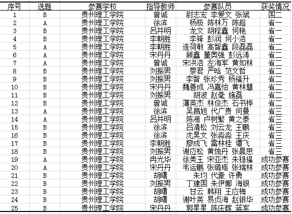 今年9月14日至17日,理学院通过前期层层筛选,最终选拔出30支优秀参赛队代表我校参加本届竞赛,最终通过所有指导老师和参赛队员三天两夜的努力,取得了国家二等奖1项,省级一等奖3项,省级二等奖8项,省级三等奖6项的优异成绩。获奖率高达83.3%,在全省高校名列前茅。