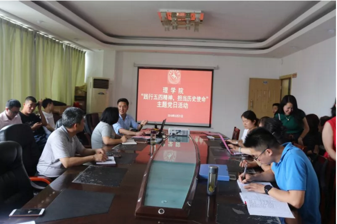 (理学院 苏琴 报道)按照党委组织部统一部署与工作要求,5月21日中午,理学院教工党支部在主楼825会议室开展“践行五四精神 勇担历史使命”主题党日活动。为扩大活动影响力,有效发挥主题党日活动的感召力,活动扩大到全体教职工参加,党总支副书记袁小松、副院长王春江以普通党员身份参加主题党日活动。