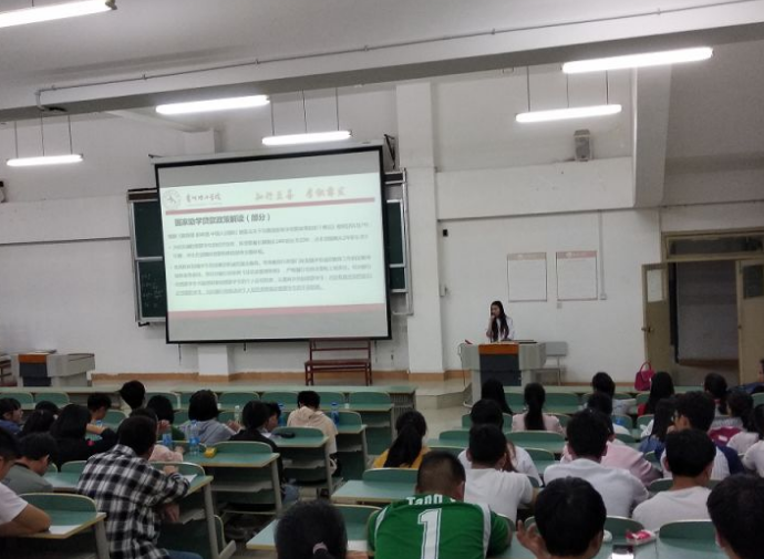 她强调在填写家庭情况调查表时要据实填写,不弄虚作假,要把机会留给真正需要帮助的同学,并且她还鼓励我们通过自己的努力去争取奖学金。除此之外,她还向我们详细的介绍了学校的学费减免、临时困难补助的具体要求以及居民基本医疗保险、校方责任险的重要性,并要求我们尽早激活社保卡,避免需要使用时产生麻烦。而对于生源地信用助学贷款,她严肃地给我们说明了一些办理的要求以及强调了诚信还款的重要性,并结合教育部相关文件介绍了助学贷款的一些注意事项,比如现在的还款年限由原来的14年增加到20年,从而减小了大学生的还款压力,而其中的20年时间包括在校4年,在校期间没有利息,毕业之后需要还本付息。这对于我们来说是一个很大的经济缓冲期,不仅帮我们解决了学费问题更是让我们能够安心完成学业,但如果我们不按期还款信用就会受到不良影响,给后续生活带来诸多不利。所以贷款还款要慎重,诚信切不可失,莫让缓冲期沦为带来严重后果的导火索。