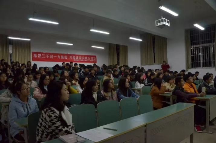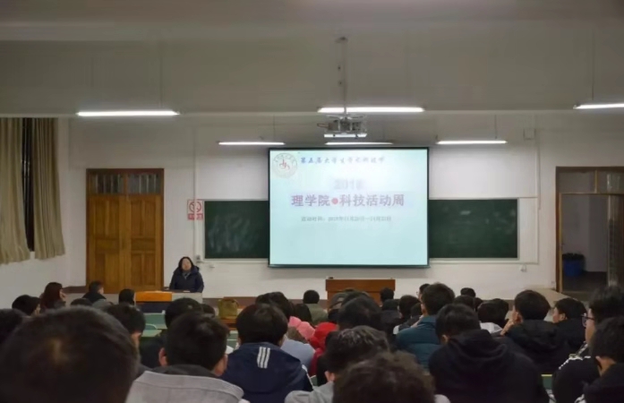 (理学院 李丽妮 报道)理学院2018年11月20号晚19:00,贵州理工学院第五届大学生学术科技节之“理学院2018年科技活动周”系列学术活动在一教111教室正式拉开帷幕。理学实验中心副主任王越作为主持人发言并介绍科技周活动流程。理学院副院长李智玲以“感受科技魅力,承载青春梦想”为主题致开幕词。
