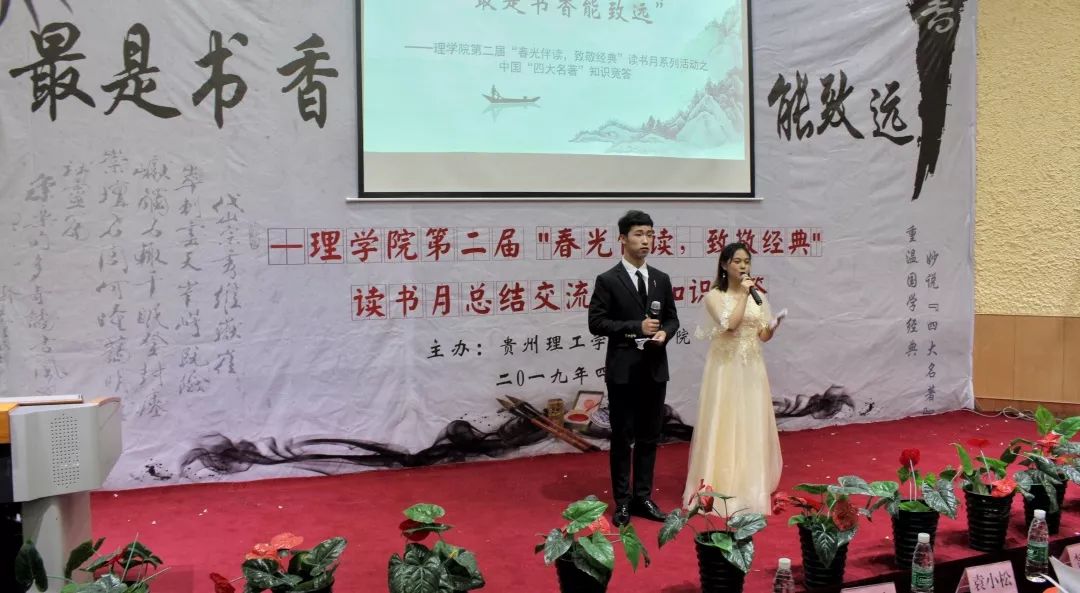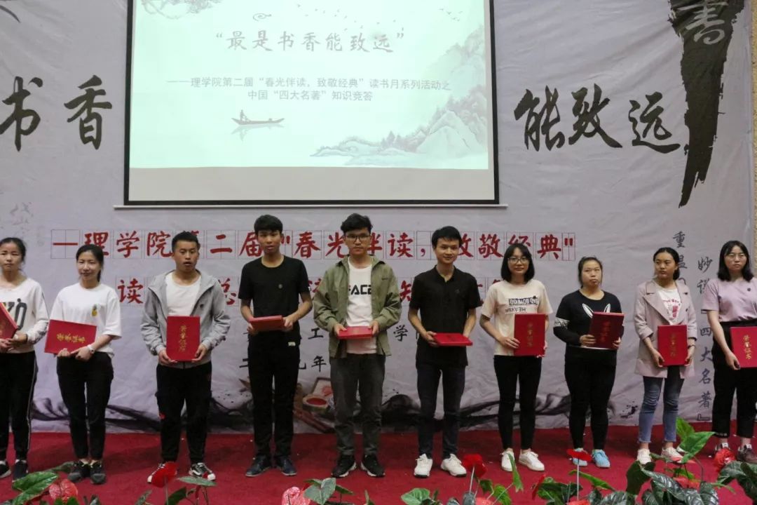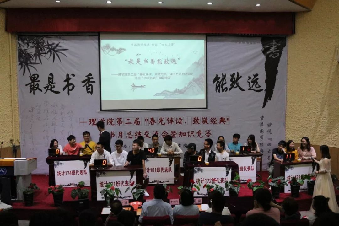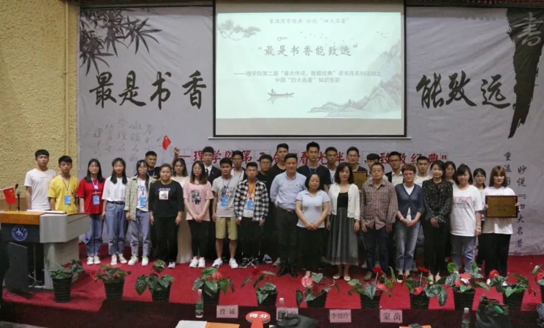 理学院为打造浓郁书香校园,推进学院学风建设,提升学院通识教育水平,引导全院学生"爱读书、读好书、善读书”,秉承全员参与、内容充实、积极创新、持之以恒的原则,理学院于2019年4月24日晚上7: 30在逸夫小报告厅举行了“最是书香能致远”——理学院第二届“春光伴读致敬经典”读书月系列活动之中国“四大名著”交流总结会暨知识竞赛。