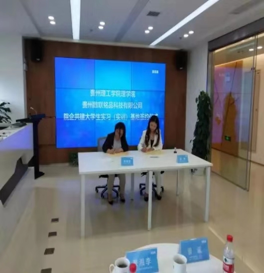 2019年6月27日上午9时,理学院与贵州数联铭品科技有限公司(简称贵州BBD)在贵州BBD会议室就院企共建大学生实习(实训)基地举行签约仪式。签约仪式由理学院副院长曾诚主持,理学院党总支书记袁小松、理学院院长李智玲、贵州BBD首席运营官董博出席签约仪式并致辞。