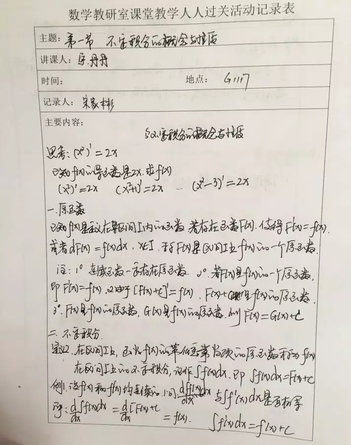 《高等数学》是我校所有专业必须开设的一门基础课程,也是大一新生入学后必须学习的一门重要课程。9月16日-17日,按照学校迎评工作要求,为切实提高老师们的教学水平,数学教研室组织本学期所有承担《高等数学》课程的老师进行课堂教学人人过关活动。本次活动的主要目的是推进高效课堂建设,课堂活动的有效性体现在教学活动要以“学”为中心,所以本次活动不仅仅看老师的专业水平,更重要的是看老师组织课堂的能力,能否以学生的学为中心进行教学活动。